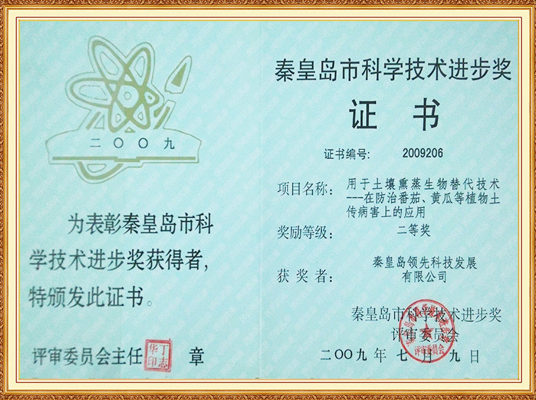 土壤熏蒸在防治番茄、黃瓜土傳病害上的應用—秦皇島科學(xué)進(jìn)步二等獎