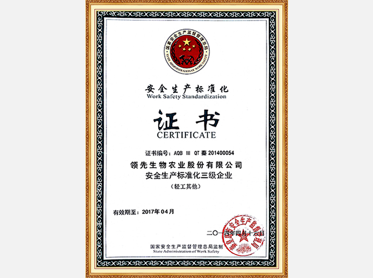 安全生產(chǎn)標準化企業(yè)證書(shū)